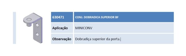 Aplicação MINICONV Observação Dobradiça superior da porta.
