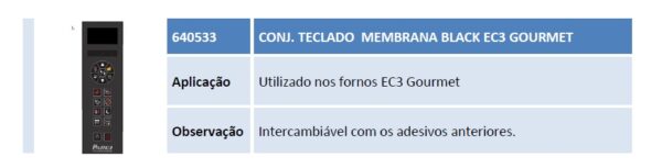 Aplicação Utilizado nos fornos EC3 Gourmet Observação Intercambiável com os adesivos anteriores.