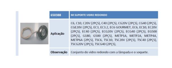 Observação Conjunto do vidro redondo com a lâmpada e o soquete.