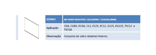Aplicação CG6, CGE6, ECG6, C12, E125, EC12, G125, EG125, TSC12 e TSCG6 Observação Conjunto do vidro rebatível interno.