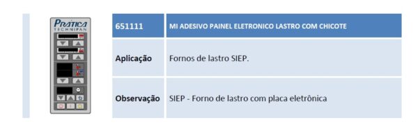 Aplicação Fornos de lastro SIEP. Observação SIEP – Forno de lastro com placa eletrônica