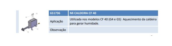 Aplicação Utilizada nos modelos CF 40 (G4 e G5) Aquecimento da caldeira para gerar humidade. Observação