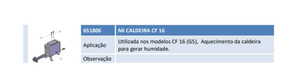 Aplicação Utilizada nos modelos CF 16 (G5), Aquecimento da caldeira para gerar humidade. Observação