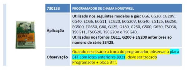 Quando necessário a troca do programador, observar a placa