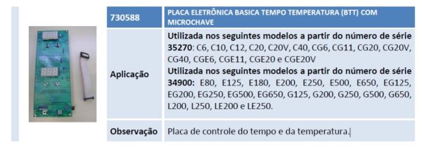 Observação Placa de controle do tempo e da temperatura.