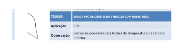 Aplicação ES9 Observação Sensor responsável pela leitura da temperatura da câmara interna.