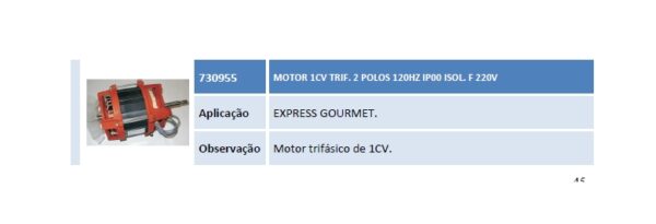 Aplicação EXPRESS GOURMET. Observação Motor trifásico de 1CV.