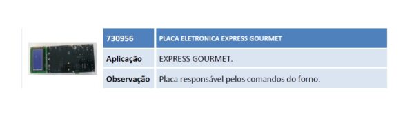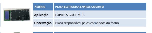 Aplicação EXPRESS GOURMET. Observação Placa responsável pelos comandos do forno.