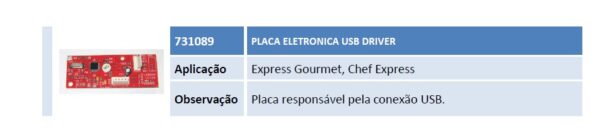 Aplicação Express Gourmet, Chef Express Observação Placa responsável pela conexão USB.