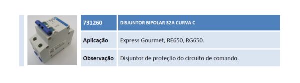 Aplicação Express Gourmet, RE650, RG650. Observação Disjuntor de proteção do circuito de comando.