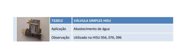 Aplicação Abastecimento de água Observação Utilizado na HISU 056, 076, 096