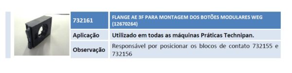 Aplicação Utilizado em todas as máquinas Práticas Technipan. Observação Responsável por posicionar os blocos de contato 732155 e 732156