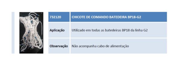 Aplicação Utilizado em todas as batedeiras BP36 da linha G2 Observação Não acompanha cabo de alimentação.