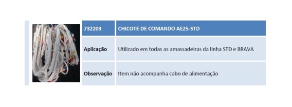 Aplicação Utilizado em todas as amassadeiras da linha STD e BRAVA Observação Item não acompanha cabo de alimentação