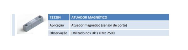 Aplicação Atuador magnético (sensor de porta) Observação Utilizado nos Uk’s e Mc 2500