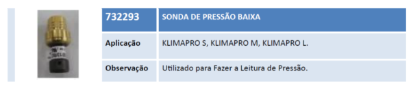 Aplicação: KLIMAPRO S, KLIMAPRO M, KLIMAPRO L. Observação: Utilizado para Fazer a Leitura de Pressão.
