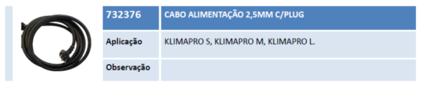 Aplicação: KLIMAPRO S, KLIMAPRO M, KLIMAPRO L. Observação: –