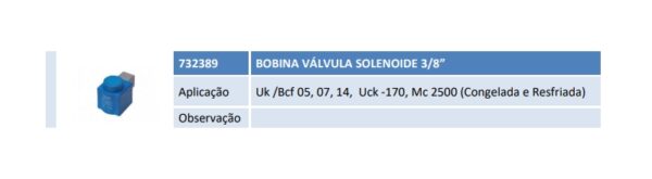Aplicação Uk /Bcf 05, 07, 14, Uck -170, Mc 2500 (Congelada e Resfriada) Observação