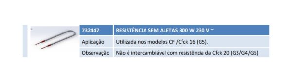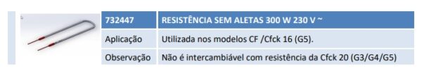 Aplicação Utilizada nos modelos CF /Cfck 16 (G5). Observação Não é intercambiável com resistência da Cfck 20 (G3/G4/G5)