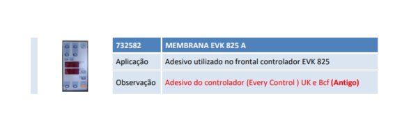 Aplicação Adesivo utilizado no frontal controlador EVK 825 Observação Adesivo do controlador (Every Control ) UK e Bcf (Antigo)