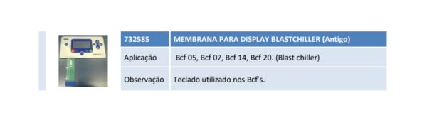 Aplicação Bcf 05, Bcf 07, Bcf 14, Bcf 20. (Blast chiller) Observação Teclado utilizado nos Bcf’s.