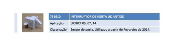 Aplicação UK/BCF 05, 07, 14. Observação Sensor de porta. Utilizado a partir de Fevereiro de 2014.