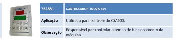 Aplicação Utilizado para controle do CSA600. Observação Responsável por controlar o tempo de funcionamento da máquina.