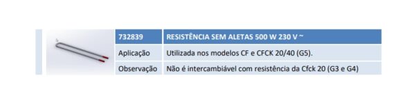 Aplicação Utilizada nos modelos CF e CFCK 20/40 (G5). Observação Não é intercambiável com resistência da Cfck 20 (G3 e G4)