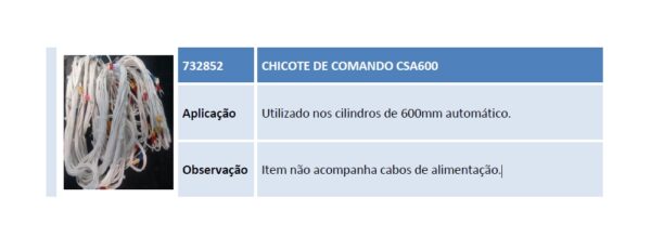Aplicação Utilizado nos cilindros de 600mm automático. Observação Item não acompanha cabos de alimentação.