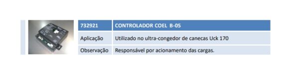 Aplicação Utilizado no ultra-congedor de canecas Uck 170 Observação Responsável por acionamento das cargas.
