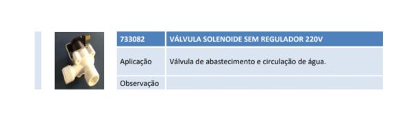 Aplicação Válvula de abastecimento e circulação de água. Observação