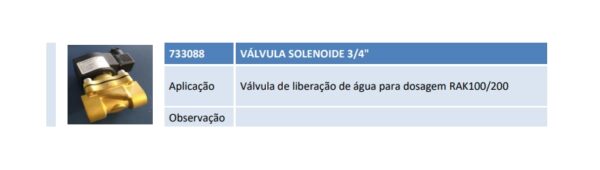 Aplicação Válvula de liberação de água para dosagem RAK100/200 Observação