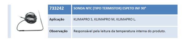Aplicação: KLIMAPRO S, KLIMAPRO M, KLIMAPRO L. Observação: Responsável pela leitura da temperatura interna do produto.