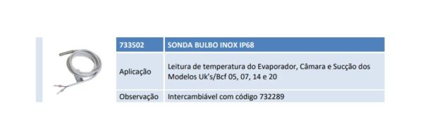 Aplicação Leitura de temperatura do Evaporador, Câmara e Sucção dos Modelos Uk’s/Bcf 05, 07, 14 e 20 Observação Intercambiável com código 732289
