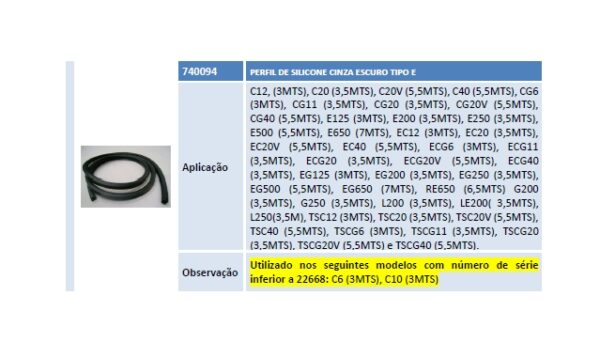 E500 (5,5MTS), E650 (7MTS), EC12 (3MTS), EC20 (3,5MTS),