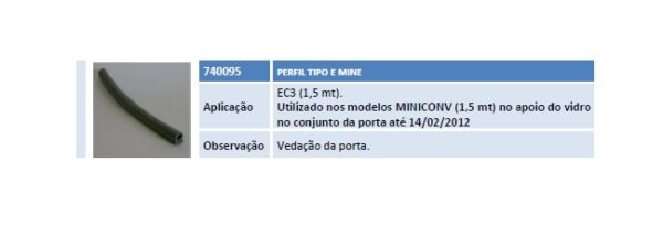 Aplicação EC3 (1,5 mt). Utilizado nos modelos MINICONV (1,5 mt) no apoio do vidro no conjunto da porta até 14/02/2012 Observação Vedação da porta