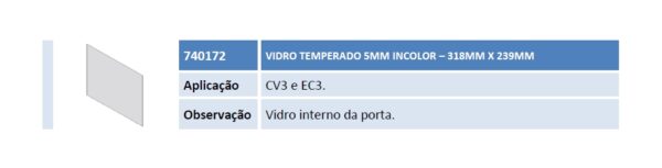 Aplicação CV3 e EC3. Observação Vidro interno da porta