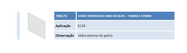 Aplicação EC6T. Observação Vidro interno da porta.