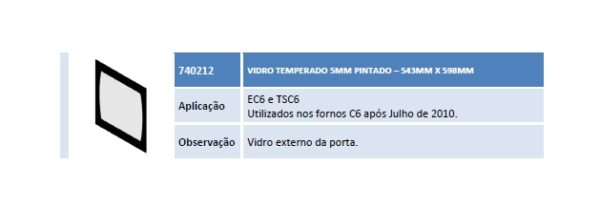 Aplicação EC6 e TSC6 Utilizados nos fornos C6 após Julho de 2010. Observação Vidro externo da porta.