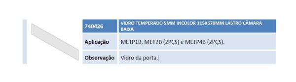 Aplicação METP1B, MET2B (2PÇS) e METP4B (2PÇS). Observação Vidro da porta.