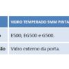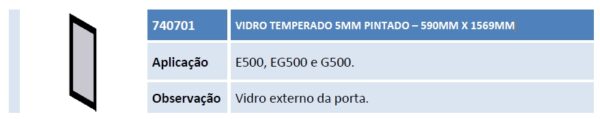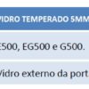 Aplicação E500, EG500 e G500. Observação Vidro externo da porta.