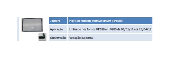 Aplicação Utilizado nos fornos HPE80 e HPG80 de 08/01/11 até 25/04/12 Observação Vedação da porta.