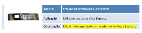 Aplicação Utilizado em todos Chef Express. Observação Não é intercambiável com o adesivo do Forza Express.