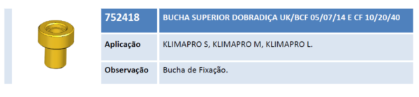 Aplicação: KLIMAPRO S, KLIMAPRO M, KLIMAPRO L. Observação: Bucha de Fixação.