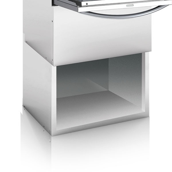 Base em aço inoxidável de 400 mm de altura com laterais e fundo fechados para acomodar até três gavetas CT-10 ou CP-16/18.